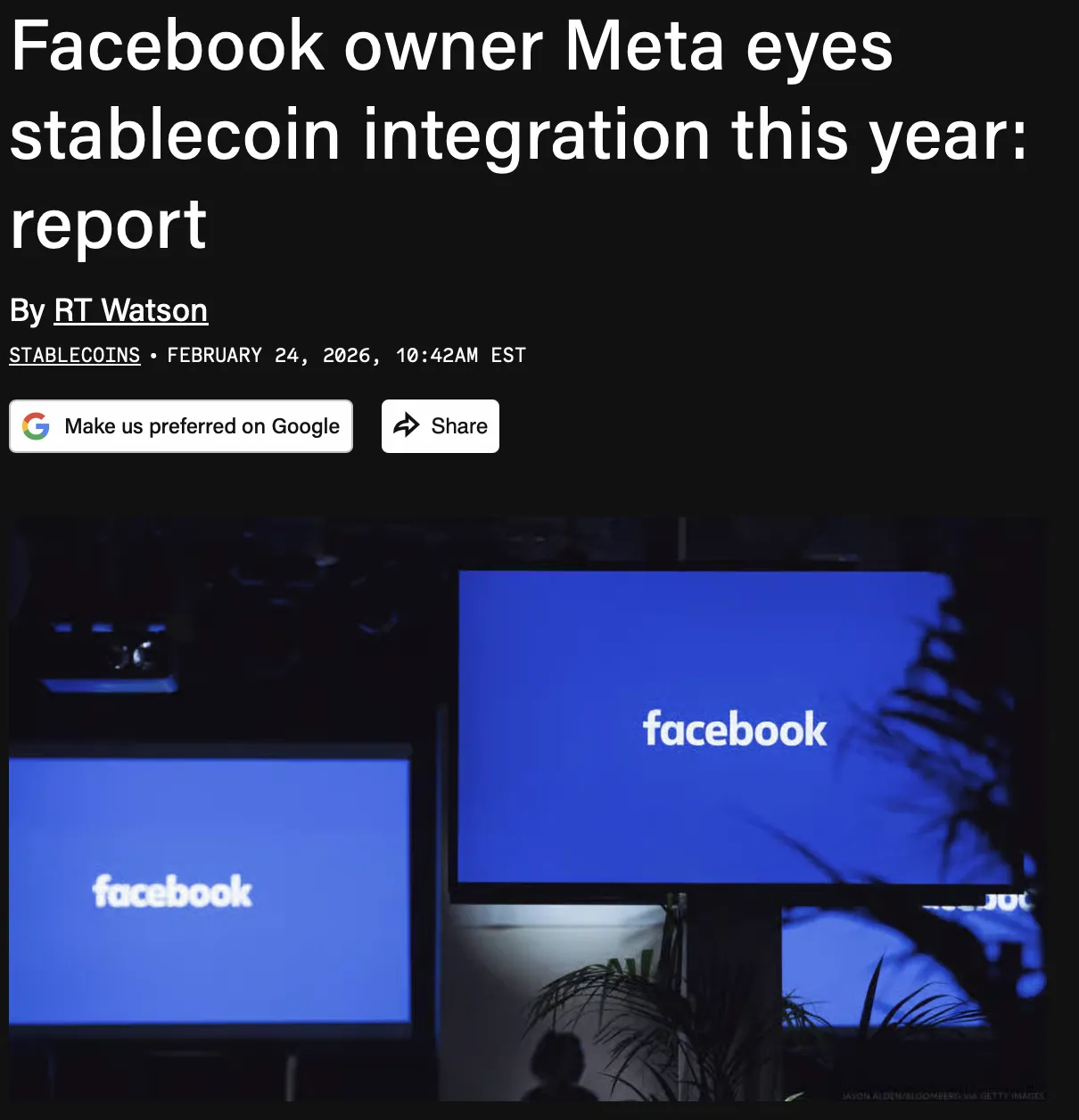 Meta* (dilarang di Rusia), pemilik Facebook, Instagram, dan WhatsApp, sedang mempertimbangkan untuk memasuki pasar stablecoin tahun ini. Menurut CoinDesk yang mengutip sumber anonim, perusahaan tersebut telah menghubungi penyedia pihak ketiga untuk mengatur pembayaran berbasis stablecoin dan mengembangkan dompet baru.