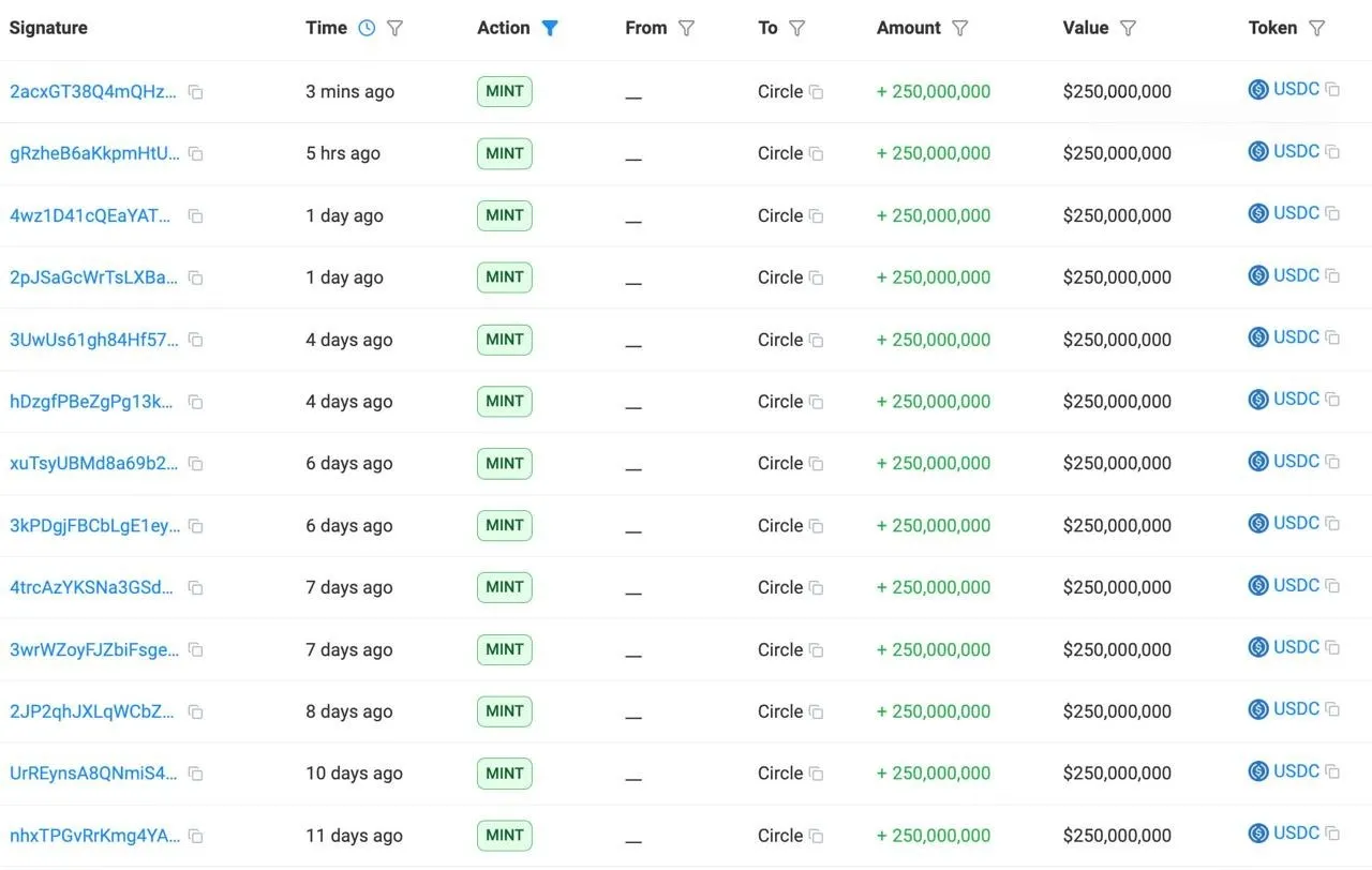 BeritaCircle telah mencetak USDC senilai $2.500.000.000 selama seminggu terakhir.Circle telah mencetak USDC senilai $2.500.000.000 selama seminggu terakhir.25 Feb, 2026olehDropsCapitalBergabunglah dengan Sosial KamiBagikan Lanjutkan membaca artikel ini di sumber: solscan.io