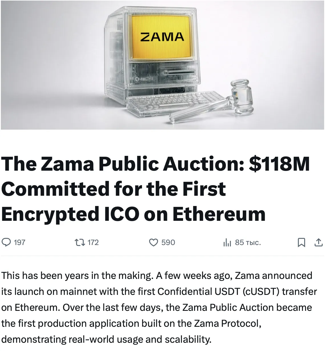 Zama Protocol has announced the results of its public auction: