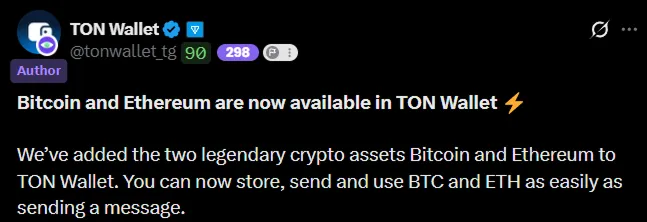 This will allow users to store, send, and use BTC and ETH directly within the Telegram app.