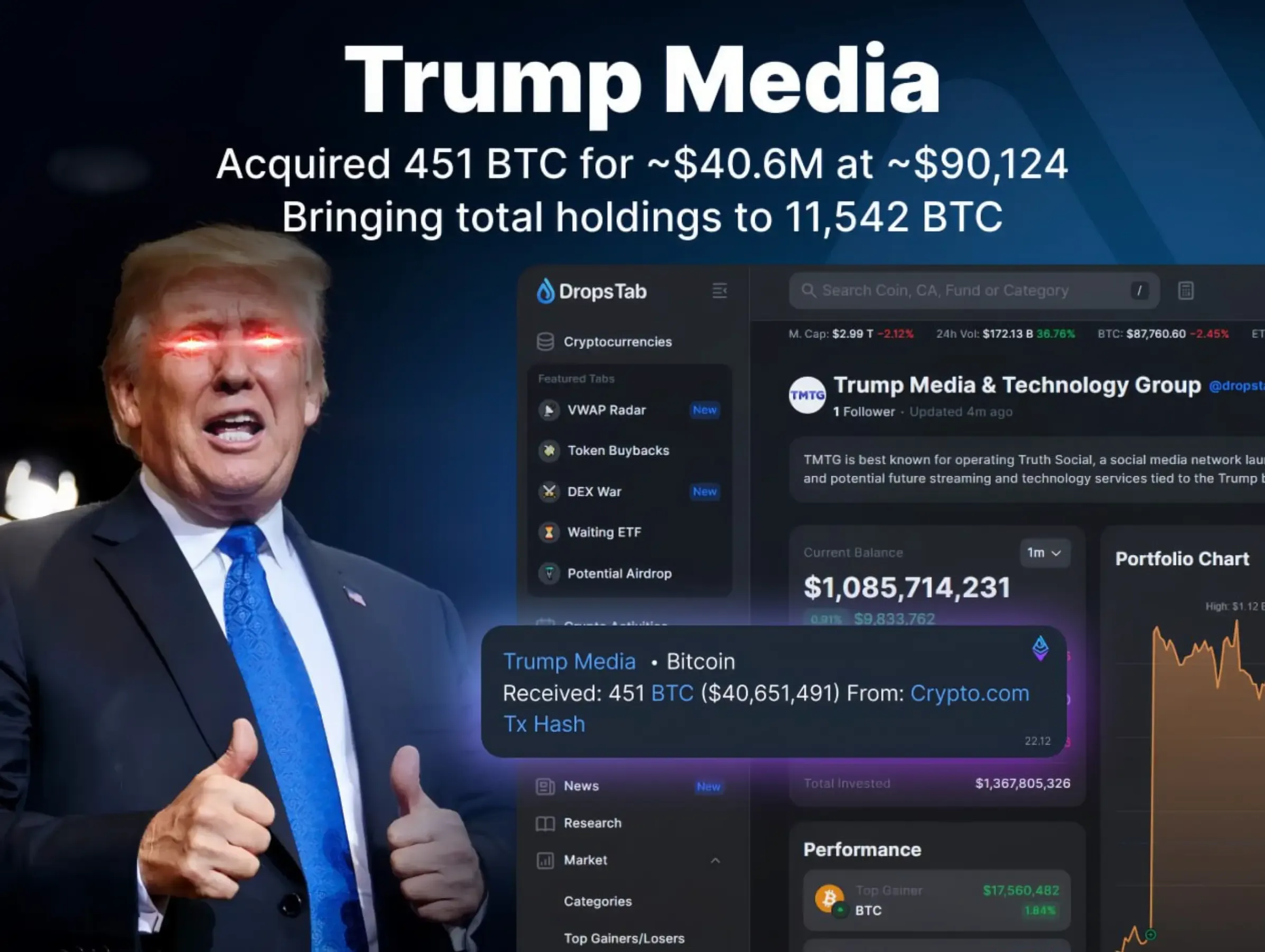 - Trump Media holds 11,542 BTC, worth ~$1.08B as of late Dec 2025