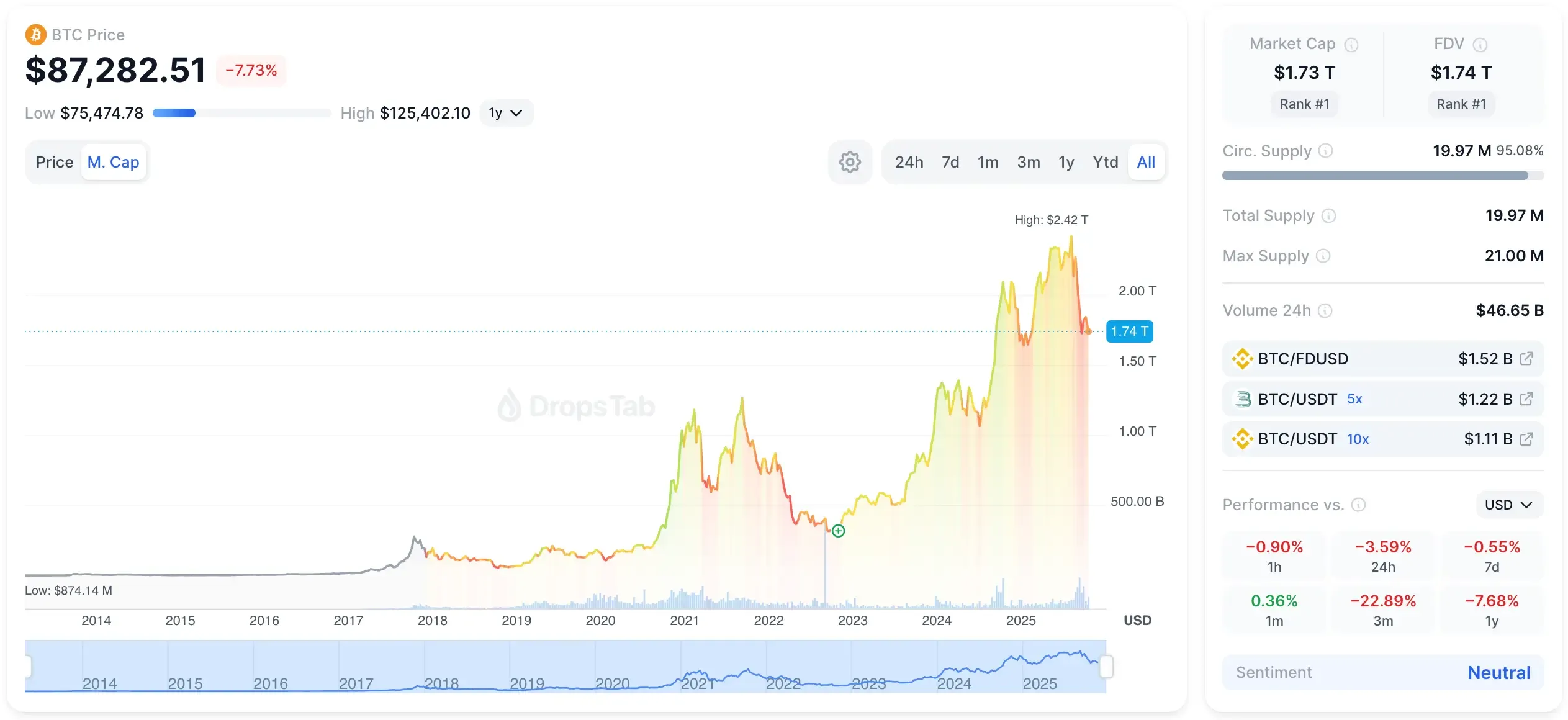 The purchase came during a volatile consolidation phase for Bitcoin, with spot prices around $87K, well below the October 2025 highs near $125K. Despite that backdrop, TMTG continued accumulating, bringing total holdings to 11,542 BTC.