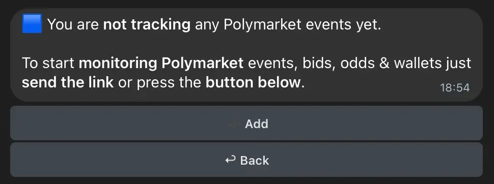 Вы можете начать отслеживание, вставив URL-адреса Polymarket прямо в чат.