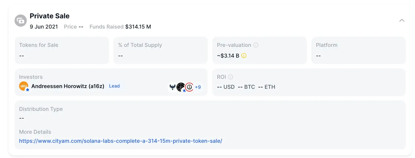 เพื่ออำนวยความสะดวกในการวิจัยของคุณ คุณไม่ได้จำกัดเพียงแค่ข้อมูลระดับผิวเผินเท่านั้น คุณสามารถดูข้อมูลเฉพาะที่ละเอียดสำหรับแต่ละรอบการระดมทุนได้โดยเพียงแค่ขยายรายการ: