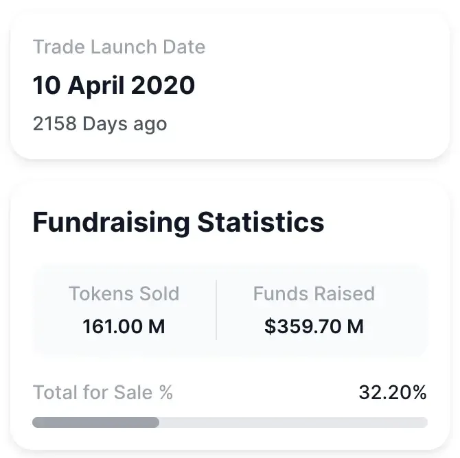 สุดท้ายที่ด้านบนของแท็บการระดมทุนสำหรับแต่ละเหรียญ ผู้ใช้สามารถค้นหา "Fundraising Statistics" การ์ด: