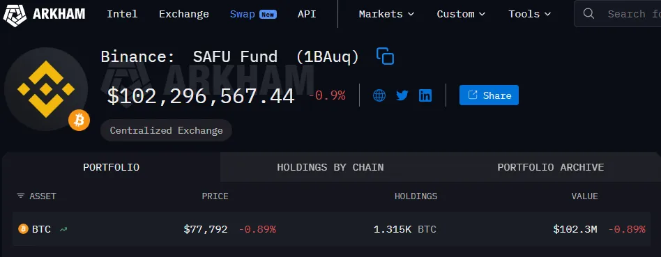 НовиниBinance SAFU фонд купив 1 315 BTC ($100 млн)Binance SAFU фонд купив 1 315 BTC ($100 млн)02 Feb, 2026відDropsCapitalПриєднуйтесь до наших соцмережПоділитися Продовжити читання цієї статті в джерелі: intel.arkm.com